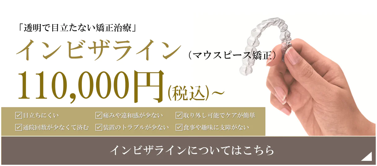 当院では矯正治療の際に透明で目立たない『マウスピース矯正』もご対応しております。詳しくは下記の画像をクリックしてください。